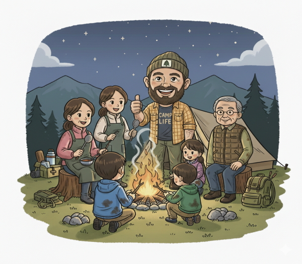 妻: キャンプ飯の総監督。私の「ギア買いすぎ病」を監視するストッパー。
