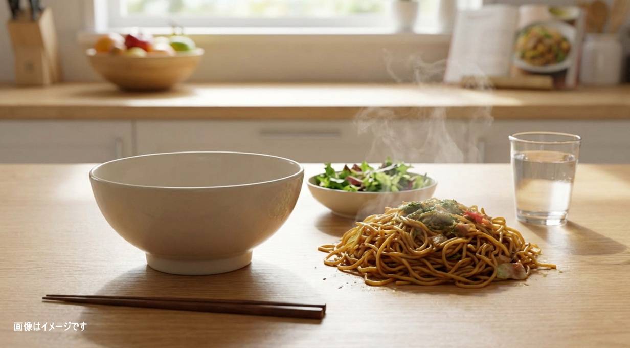 カップ焼きそばは喉越しが良くて、ついつい噛まずに飲み込むように食べてしまいがちです。早食いは満腹中枢が働く前に大量に食べてしまう原因になりますし、血糖値の急上昇(スパイク)を招きやすくなります。