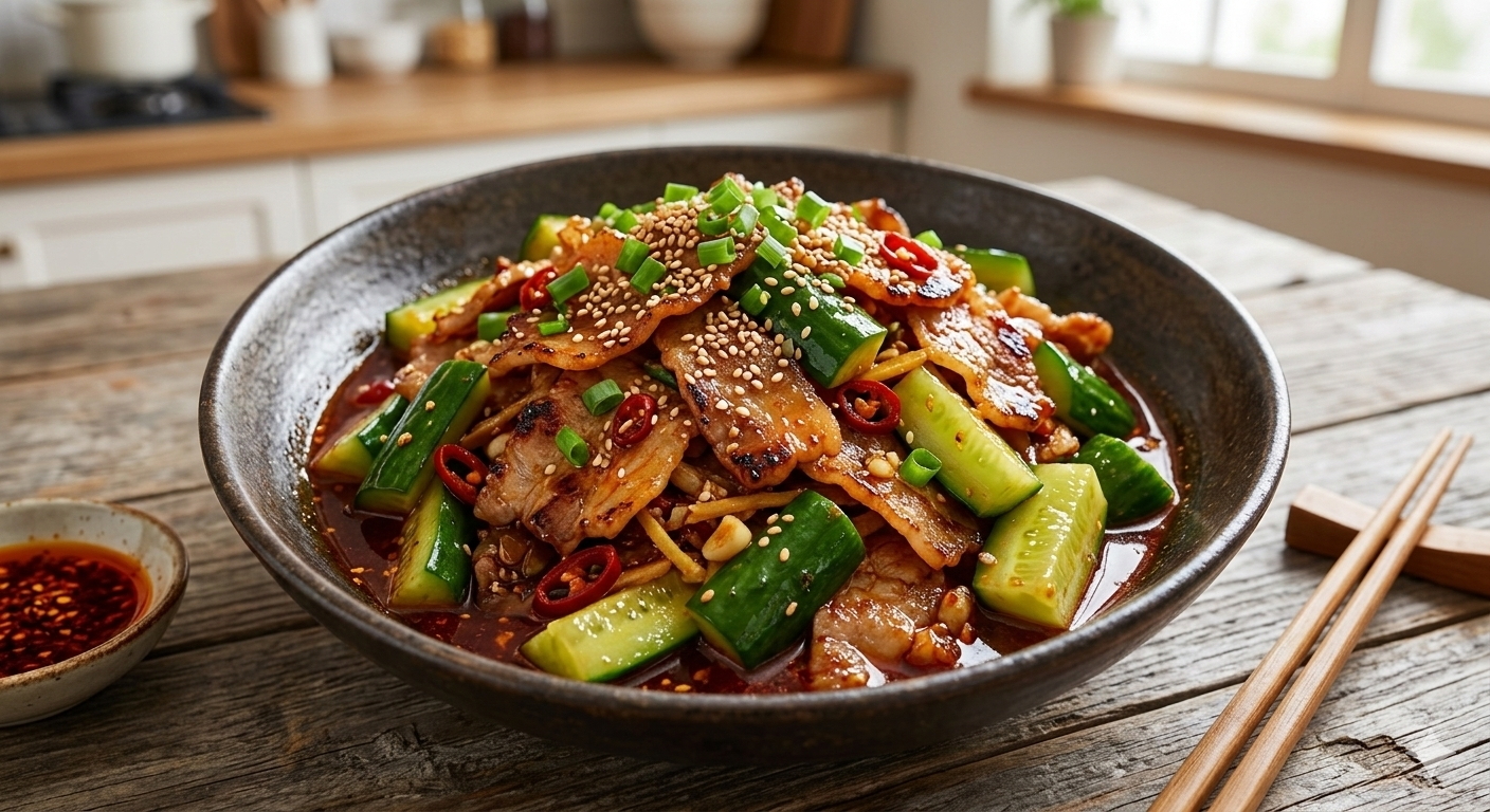具体例1:豚バラときゅうりのピリ辛中華炒め
