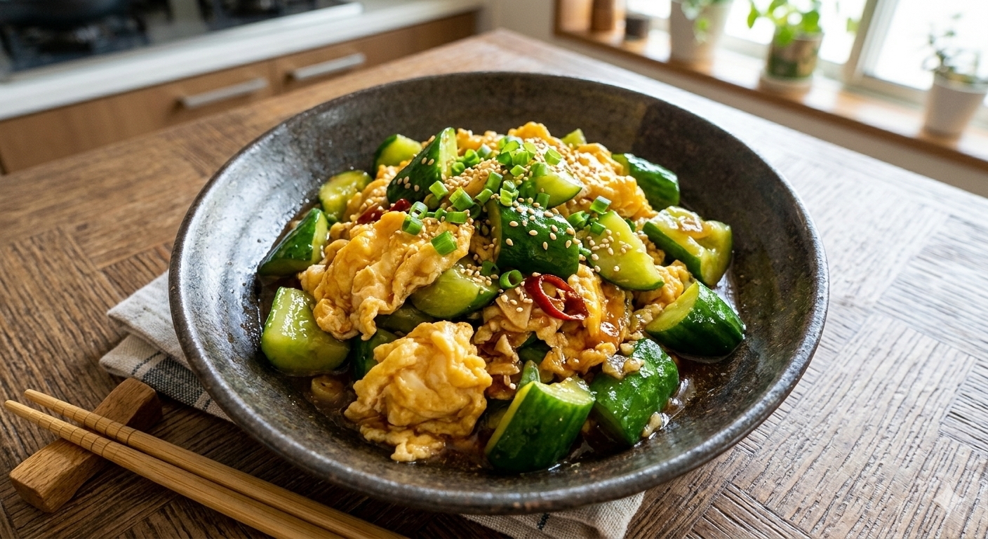 溶き卵を先に半熟状態で炒めて取り出し、同じフライパンで乱切りにしたきゅうりを炒めます。オイスターソースと少量のマヨネーズで味付けし、卵を戻し入れるだけ。「きゅうりって加熱するとこんなに美味しいんだ!」と新しい発見があるはずです。