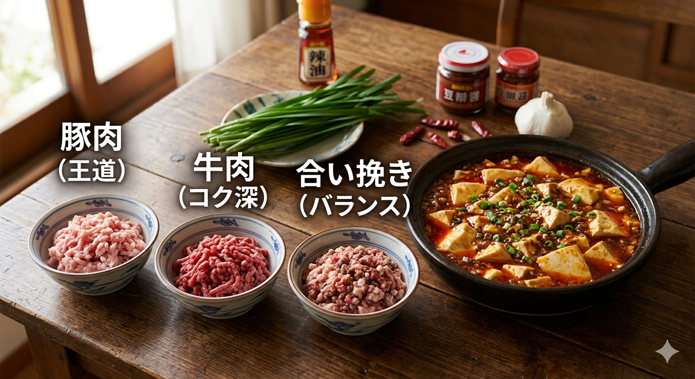 「麻婆豆腐のひき肉はこれじゃなきゃ絶対にダメ!」という厳しい決まりはありません。どれを選んでも、そのお肉ならではの新しい発見と「正解」の味が待っていますよ。