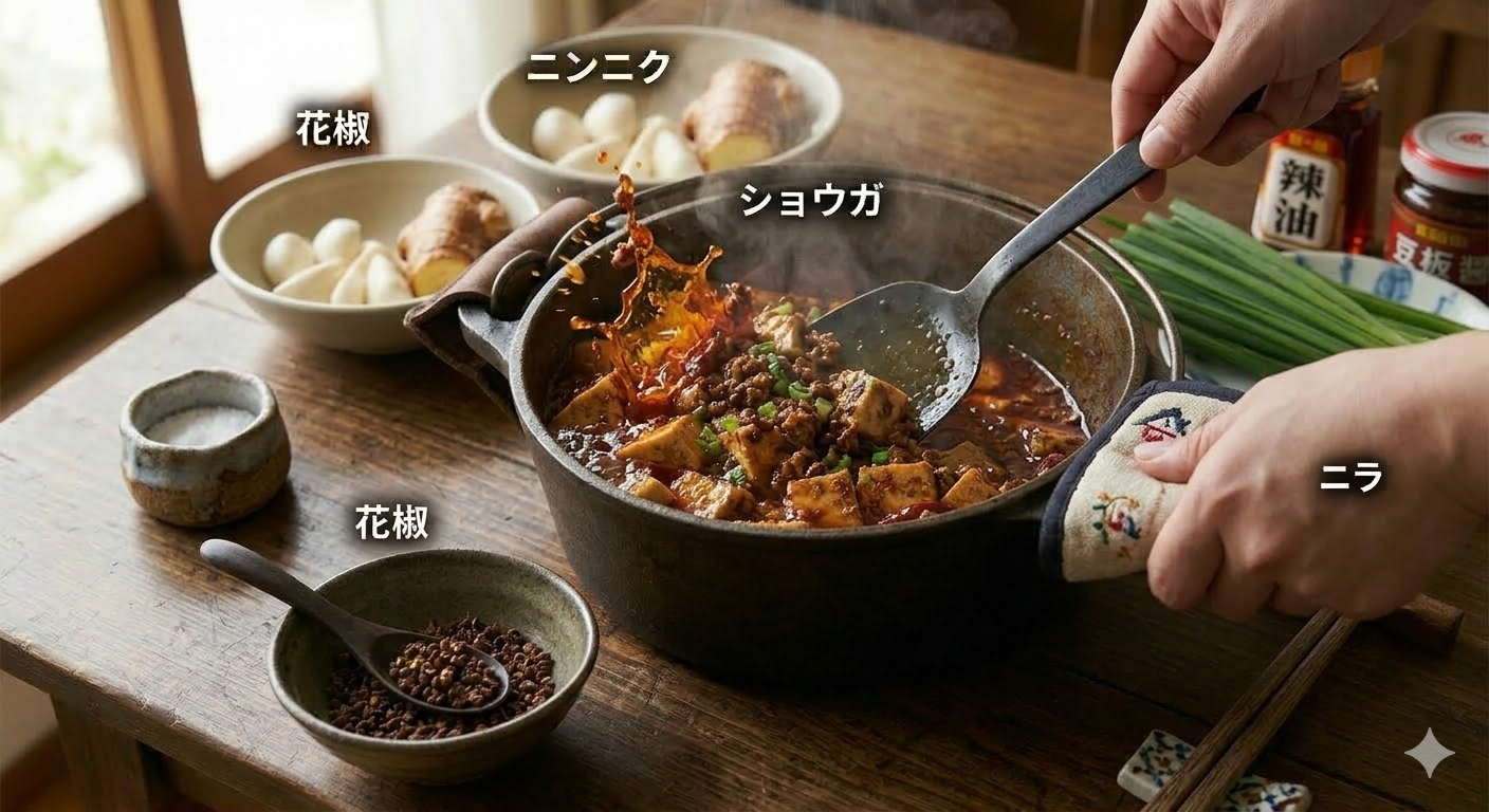 この旨味たっぷりの脂が、豆板醤(トウバンジャン)や甜麺醤(テンメンジャン)といったコクのある調味料と混ざり合うことで、麻婆豆腐特有の濃厚なソースが完成するんですね。
