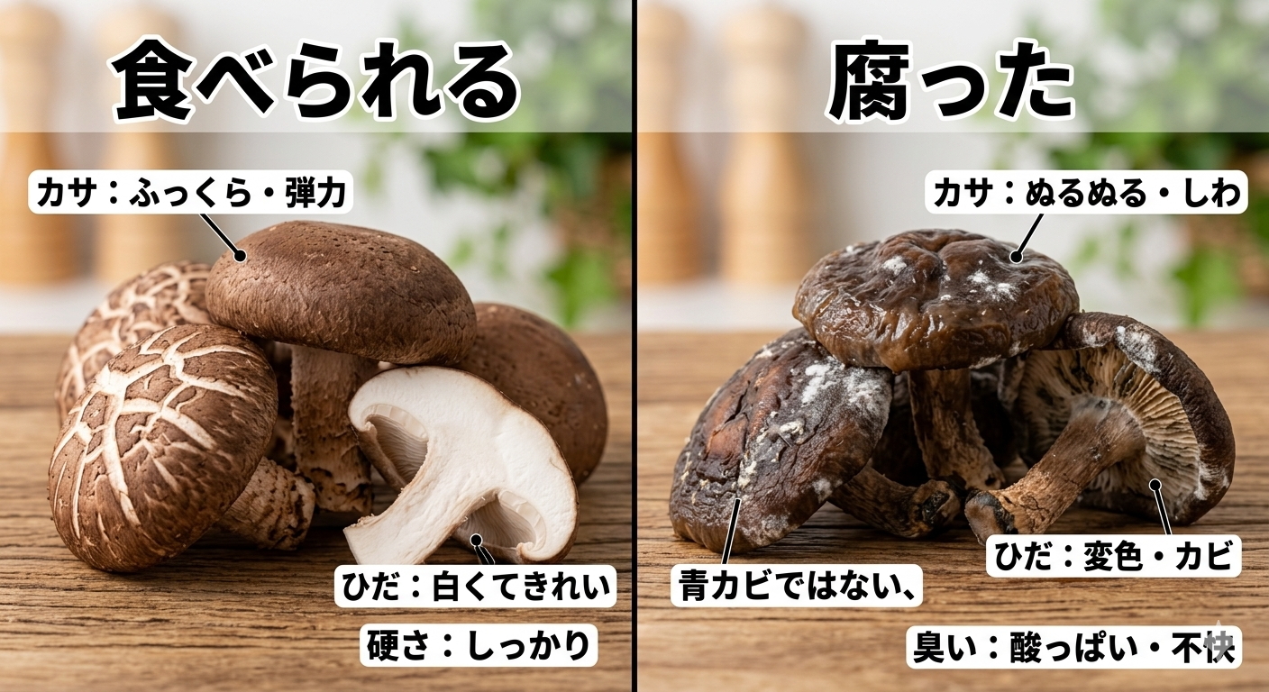 | 椎茸の症状 | 食べられるか | 注意点・判断基準 |