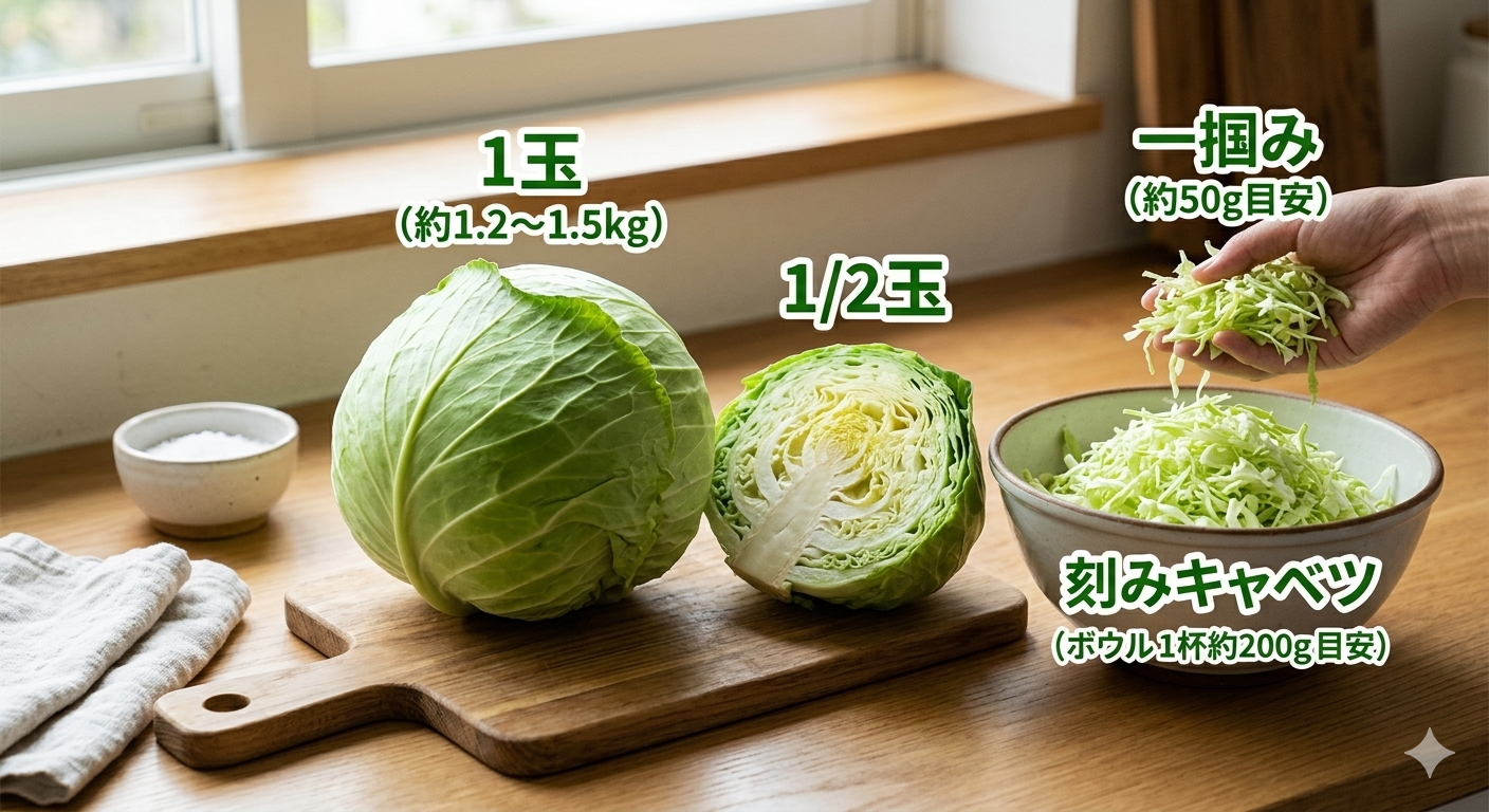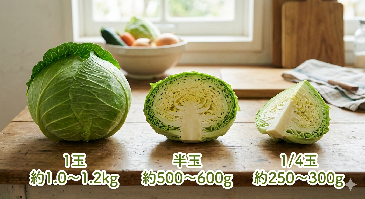 もし、冷蔵庫に「半玉」のキャベツが残っているなら、そこから推測するのも賢い方法です。
