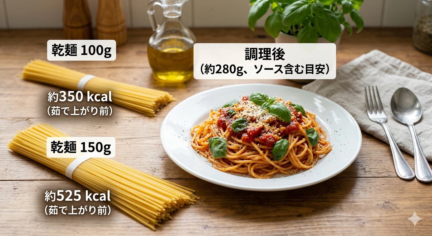 この記事では、100g・150g・200g・300gの各パスタの量について、具体的なカロリー数を交えながら分かりやすく比較していきます。各量がどの程度の食べ応えになるのか、そしてカロリー面ではどのような違いがあるのかを、実際のデータでご紹介します。