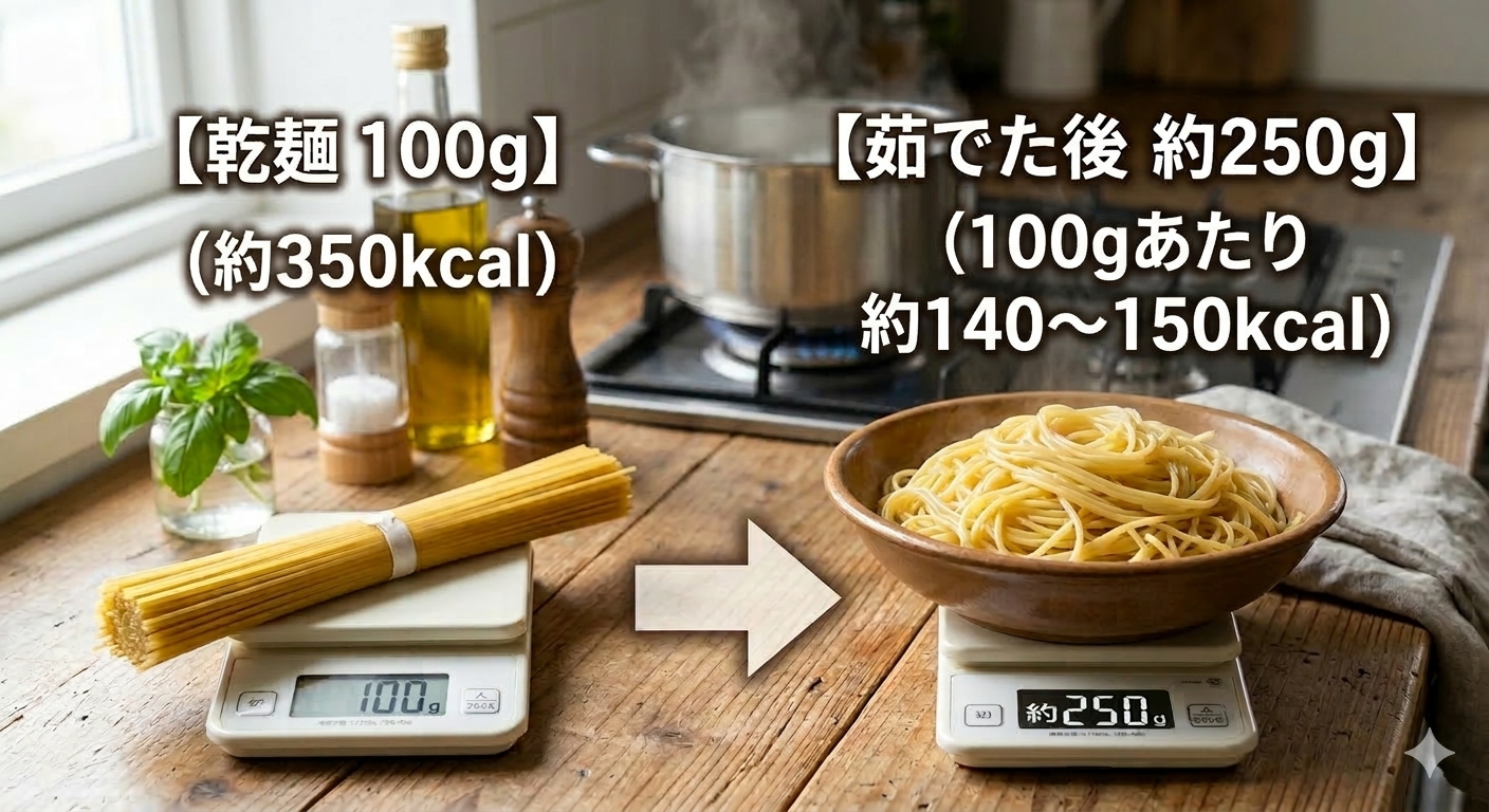 ゆでると重さが変わる?パスタの量とカロリーの不思議な関係