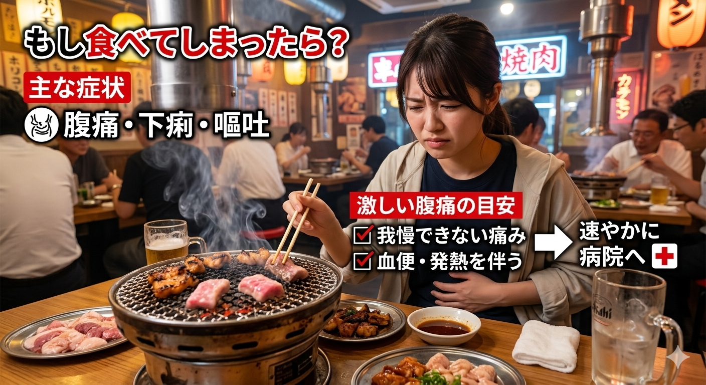 ホルモンの生焼け食べたらどうなる?症状(何時間後)と腹痛の目安