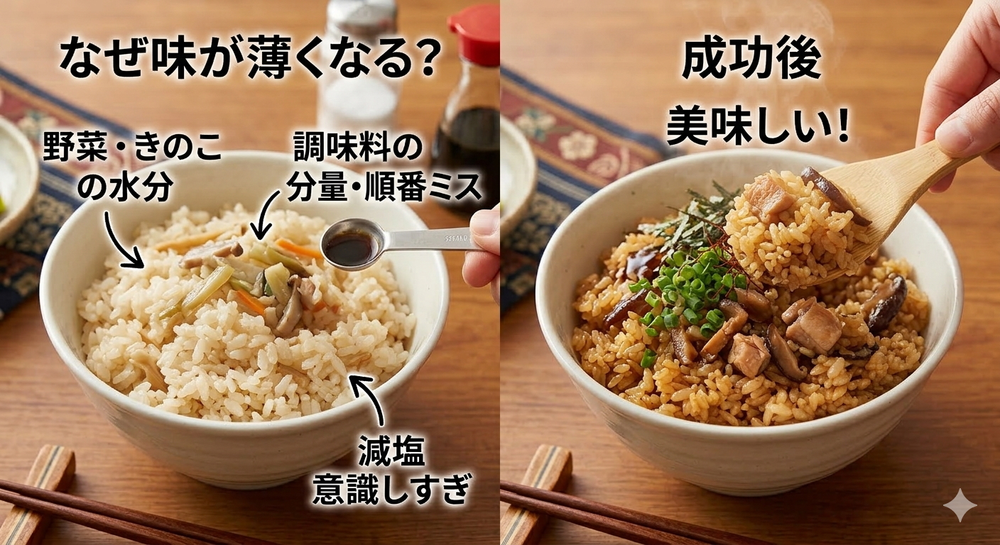 炊き込みご飯が炊き上がって、いざ食べてみたら「なんだか味が薄い」と感じたことはありませんか?