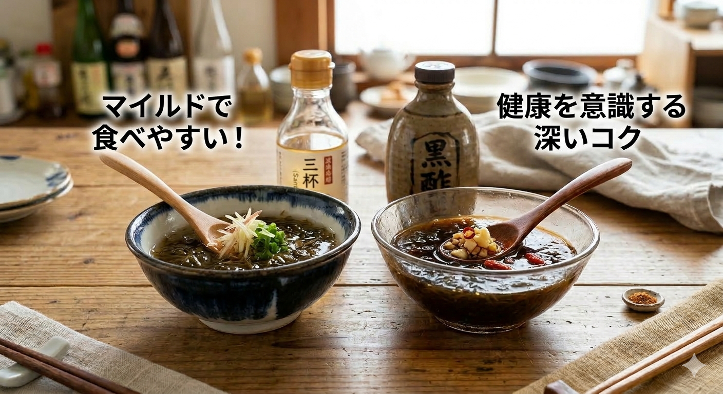 どちらか一方に決める必要はなく、「今週は子供が食べやすい三杯酢」「来週は自分のために黒酢」といったように、交互に買ってみるのも楽しいかもしれませんね。